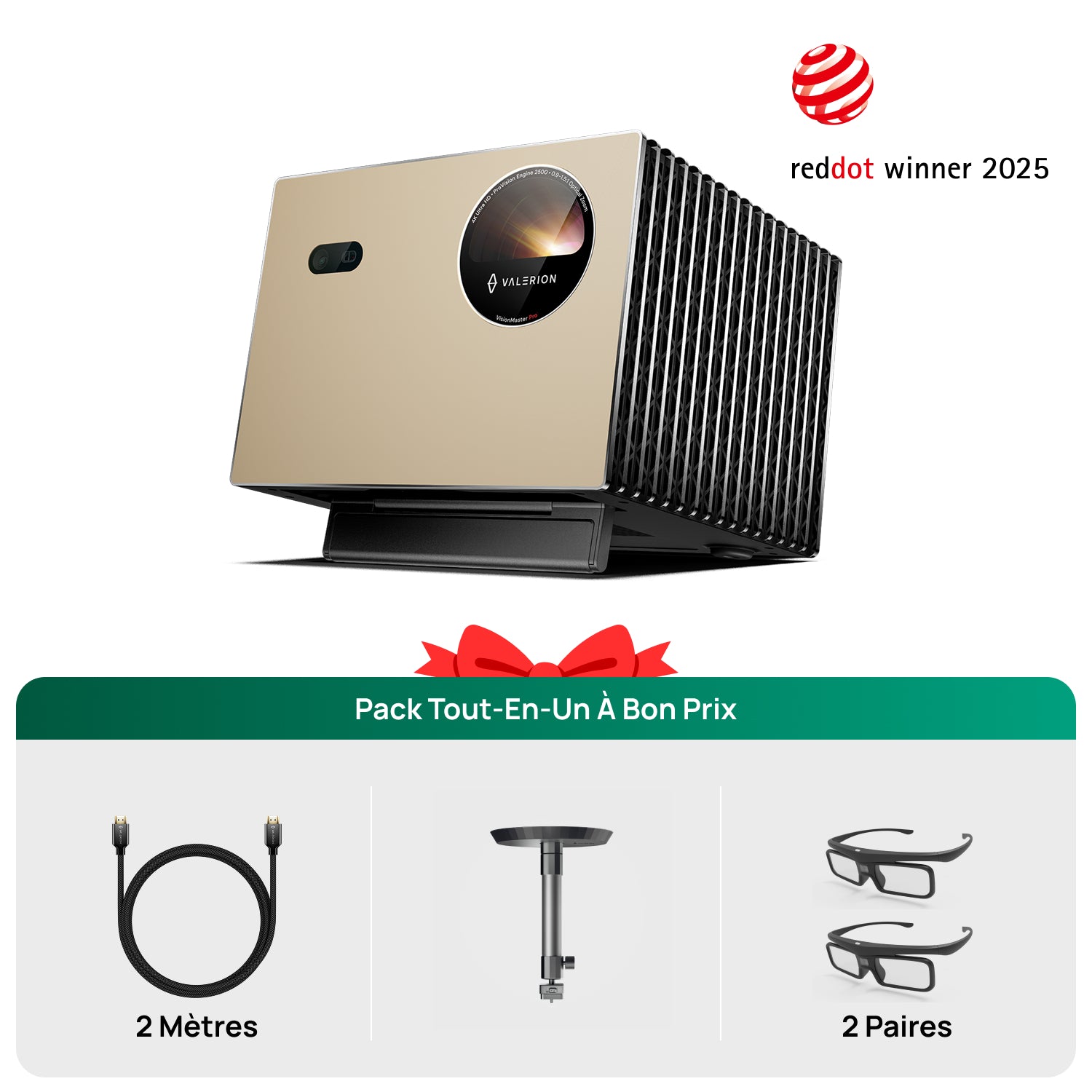 VisionMaster Pro + Support + Lunettes 3D (2 paires) + HDMI
